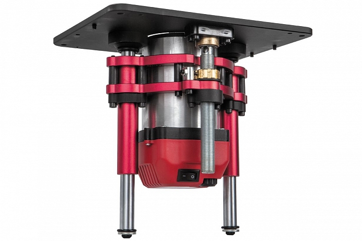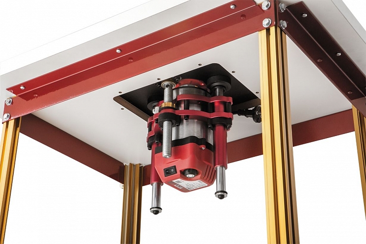 Один из вариантов использования JRM-1 – установка в стол при помощи модуля JRMLS-1 (опция), оборудованного лифтом для подъема и опускания. Сам стол может быть простым с вырезом под площадку или специальным с фрезерным упором, Т-образными пазами, собственным выключателем и иными специальными доработками.