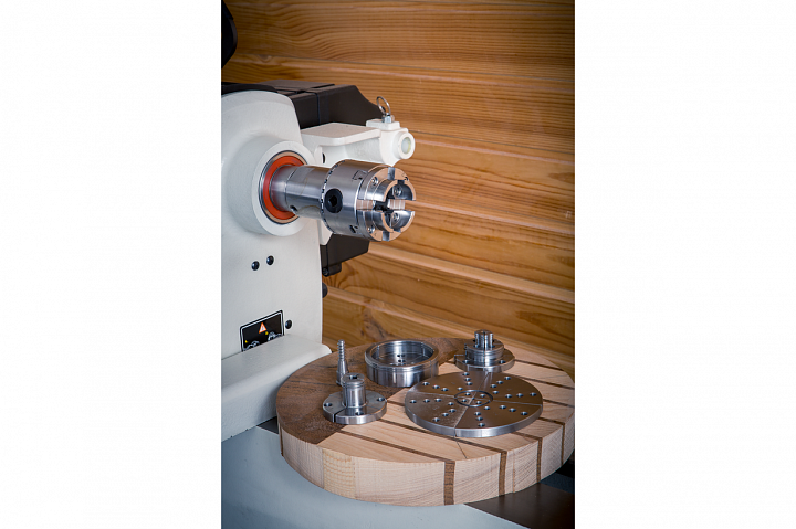 Токарный патрон, диаметр 70 мм, присоединительная резьба 1х8''TPI, комплект сменных кулачков, адаптер с 1х8''TPI на M33х3.5, зажимной ключ под квадрат, делительное приспособление на патроне, винтовая вставка, ключ шестигранный, кейс.