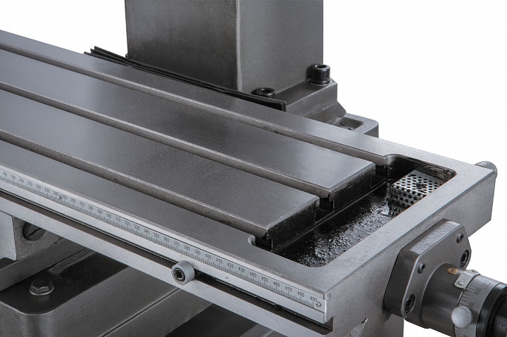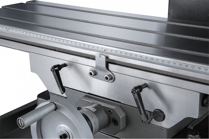 Модель JMD-45L оснащена рабочим столом размером 800 x 240мм, который перемещается по направляющим типа ласточкин хвост и имеет возможность перемещения по осям X, Y на величину 560мм и 190 мм соответственно. На столе имеется три Т-образных паза шириной 14 мм для закрепления деталей прихватами или установки тисков и других приспособлений. Общий вес станка составляет 350кг/